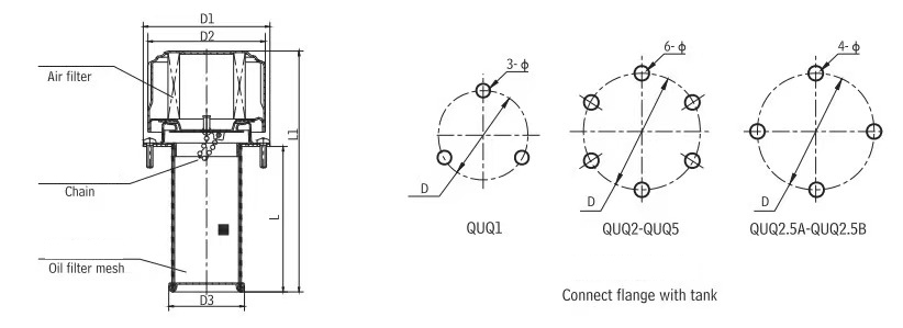 Filtre à air hydraulique de type QUQ, couvercle de réservoir d'huile hydraulique, filtre de port de remplissage d'huile.